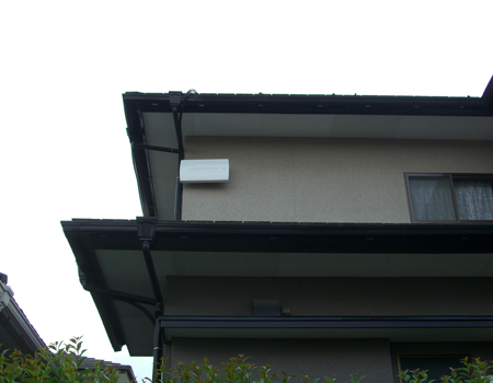 福岡市の南庄にお住いのお客様からアンテナの工事依頼です。今日中にと言うことで糸島の志摩から早良区の南庄に出かけました。雨が降っていたので営業の方も心配してましたが、なんとか工事できました。道路から見えないようにと言うことだったんですが、ひさしが出ていたのでアンテナの仰角が調整できずひさしをかわすように表に出てしまいました。映らないと付けた意味がないんで・・